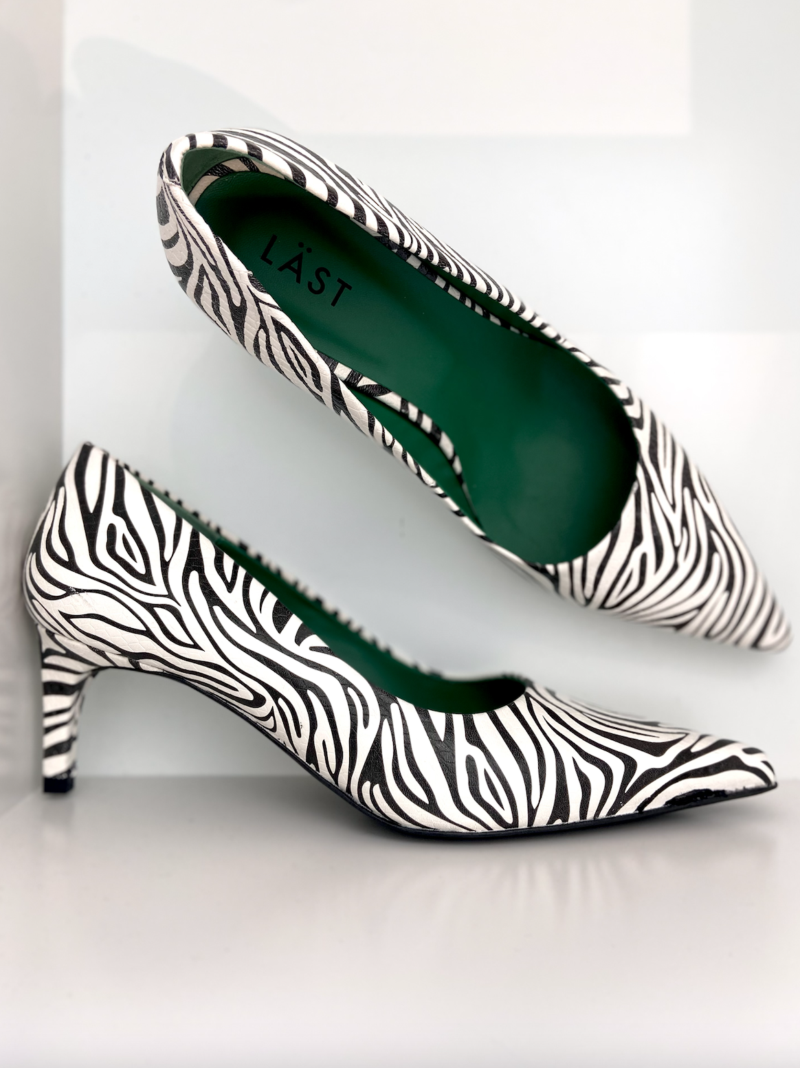 Klassisk pumpe med spiss tå og behagelig 6,5 cm hælhøyde, dekket i skinn. Skum i innersåle for komfort.