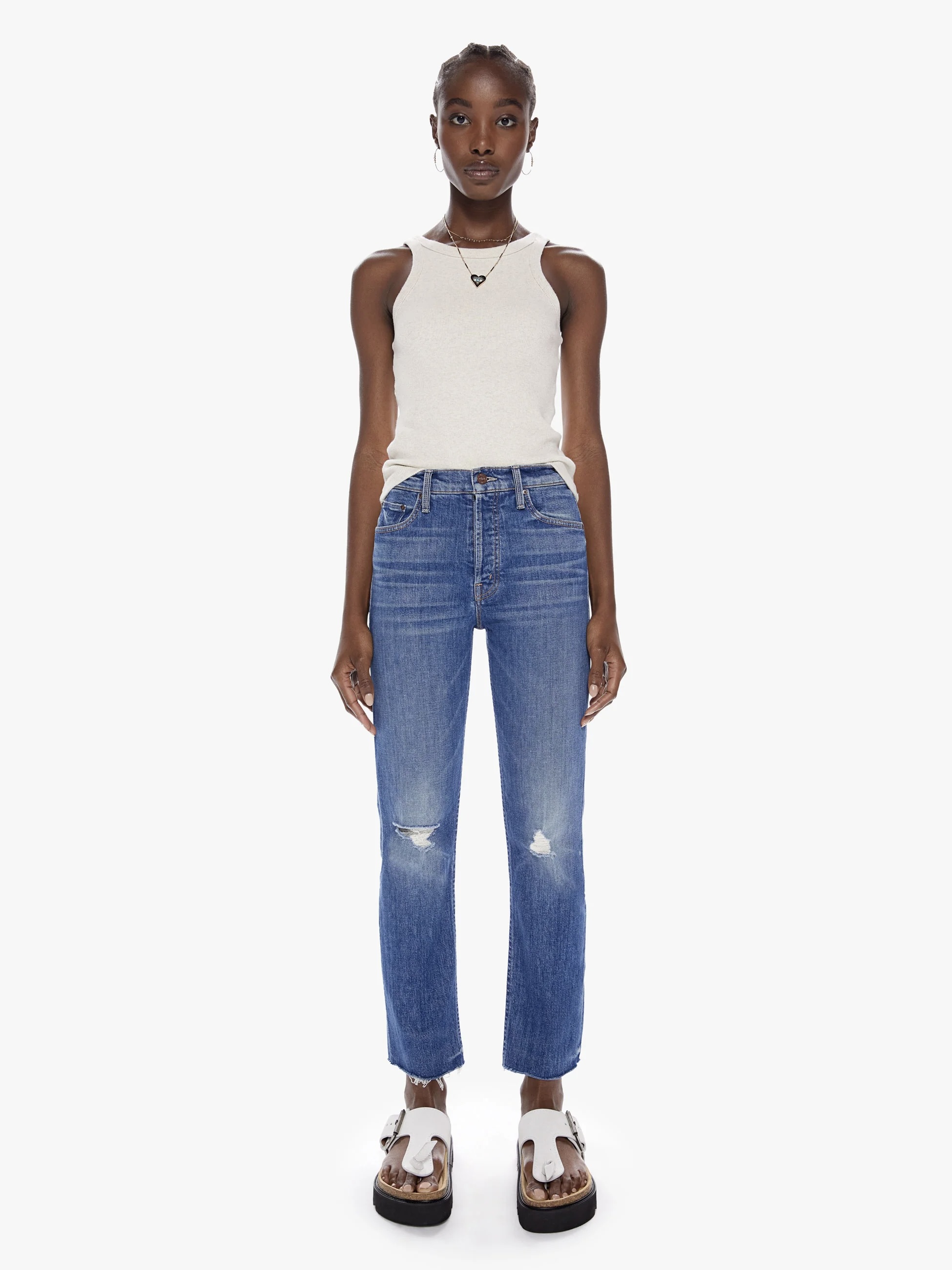 Verdenskjent. Høyhøyde jeans med rett ben, gylf med knapper, ankellang innersøm og frynsete kant. Globe Trotter er laget av denim med et snev av stretch, og er en mellomblå vask med værhår, falming og slitte detaljer.