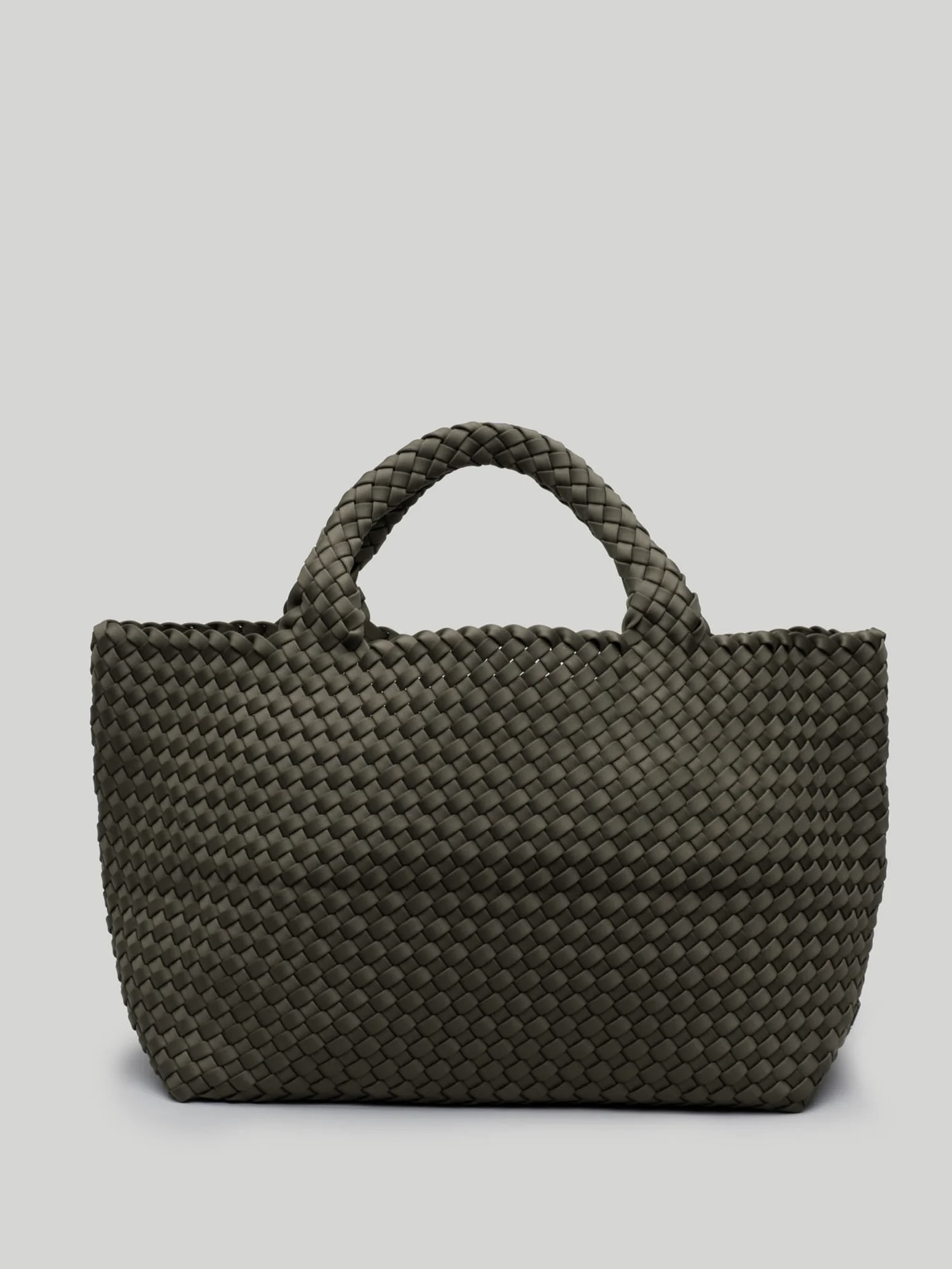 Vår bestselgende klassiske St. Barths Medium Tote er laget av håndvevde tråder av neopren. Bruk den medfølgende matchende vesken til å oppbevare det nødvendigste eller som en clutch for en kveld ute!