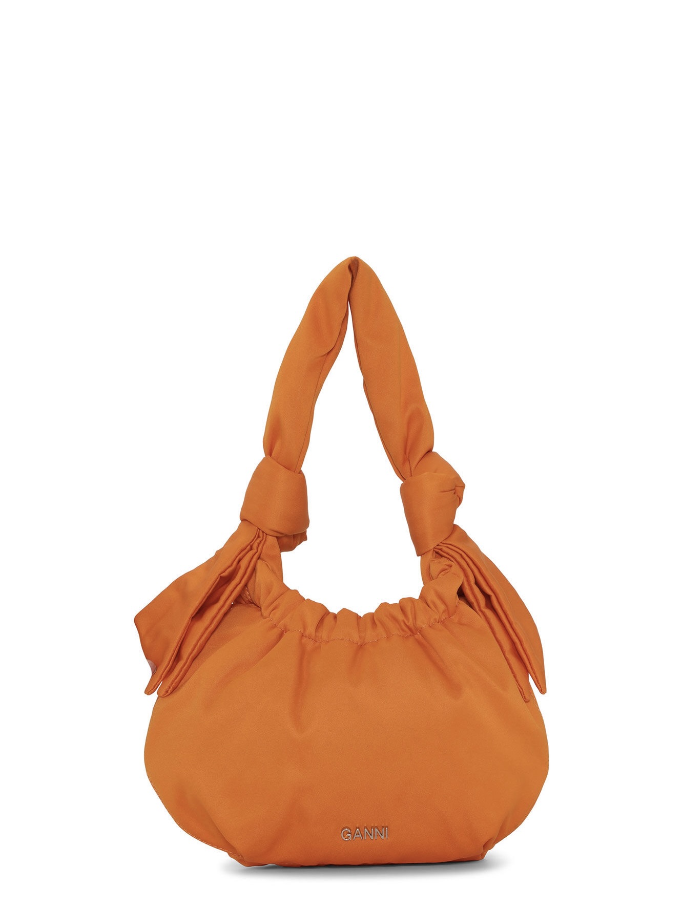 Denne Small Occasion Hobo Bag er laget av en blanding av sertifisert resirkulert polyester. Vesken har trykknapplukking, skulderstropp, knutedetalj og sølv GANNI-logo.