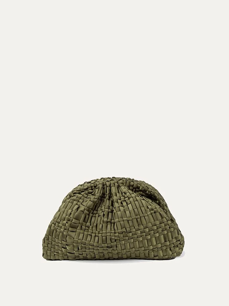 Mellomstor dameclutch i vevd båndstoff, håndlaget på eldgamle vevstoler. Denne modellen utgjør Maria La Rosa-ikonvesken, perfekt for alle årstider, emblemet på en ny storby-eleganse, som sikrer kapasitet og funksjonalitet. Den er utstyrt med en lenke for å bære den over skulderen.