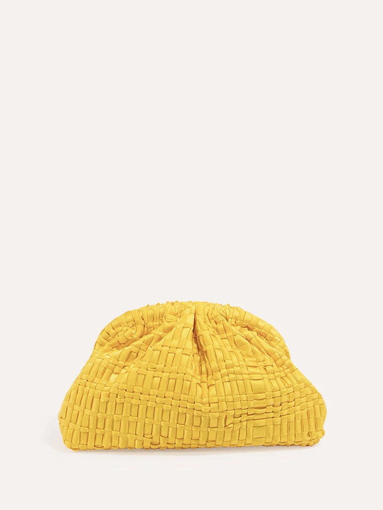 Mellomstor dameclutch i vevd båndstoff, håndlaget på eldgamle vevstoler. Denne modellen utgjør Maria La Rosa-ikonvesken, perfekt for alle årstider, emblemet på en ny storby-eleganse, som sikrer kapasitet og funksjonalitet. Den er utstyrt med en lenke for å bære den over skulderen.