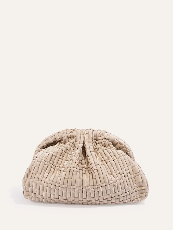 Mellomstor dameclutch i vevd båndstoff, håndlaget på eldgamle vevstoler. Denne modellen utgjør Maria La Rosa-ikonvesken, perfekt for alle årstider, emblemet på en ny storby-eleganse, som sikrer kapasitet og funksjonalitet. Den er utstyrt med en lenke for å bære den over skulderen.