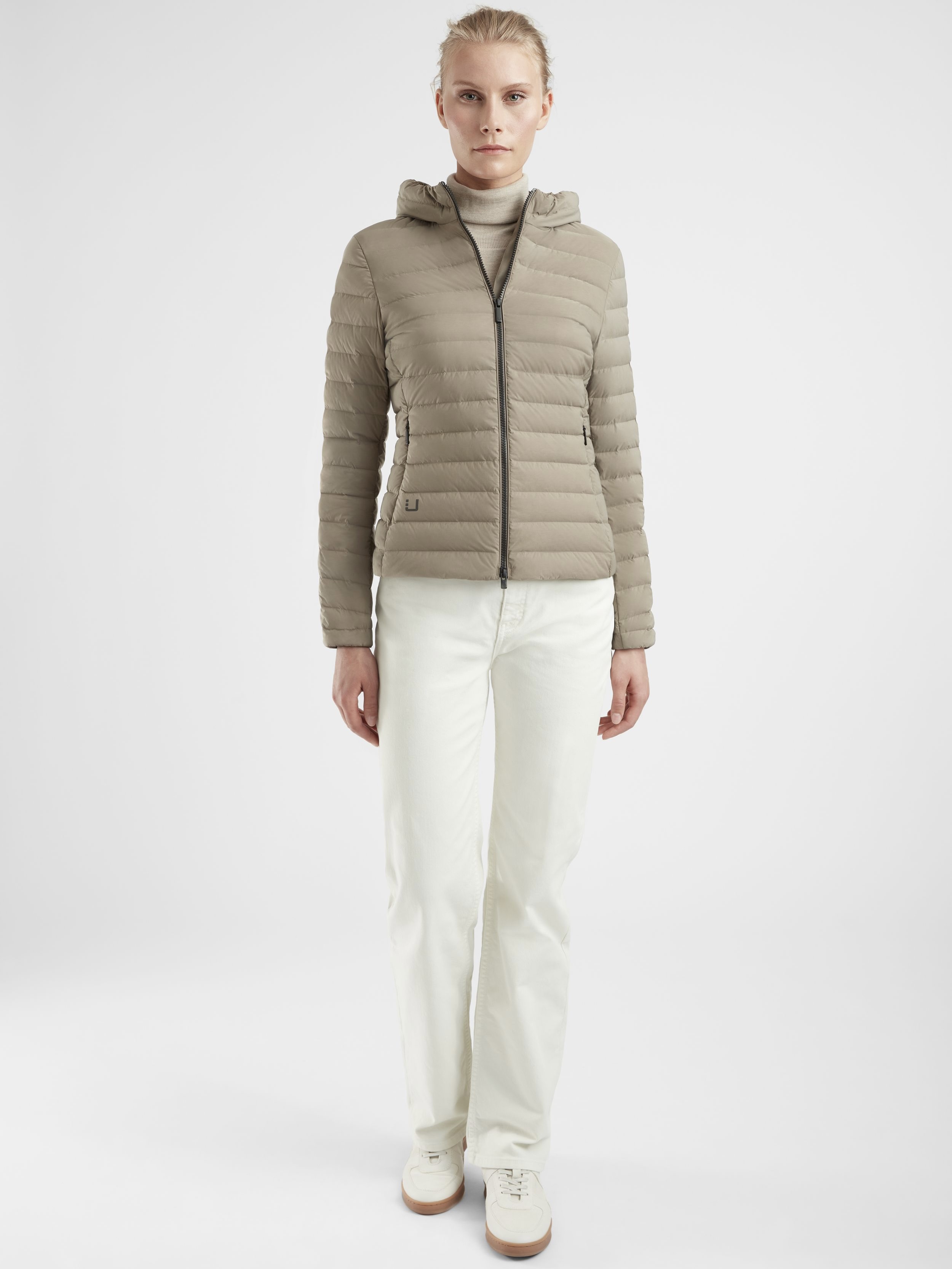 Ultralett sommerdunjakke med et raffinert utseende. Elegant hette for økt komfort og beskyttelse.