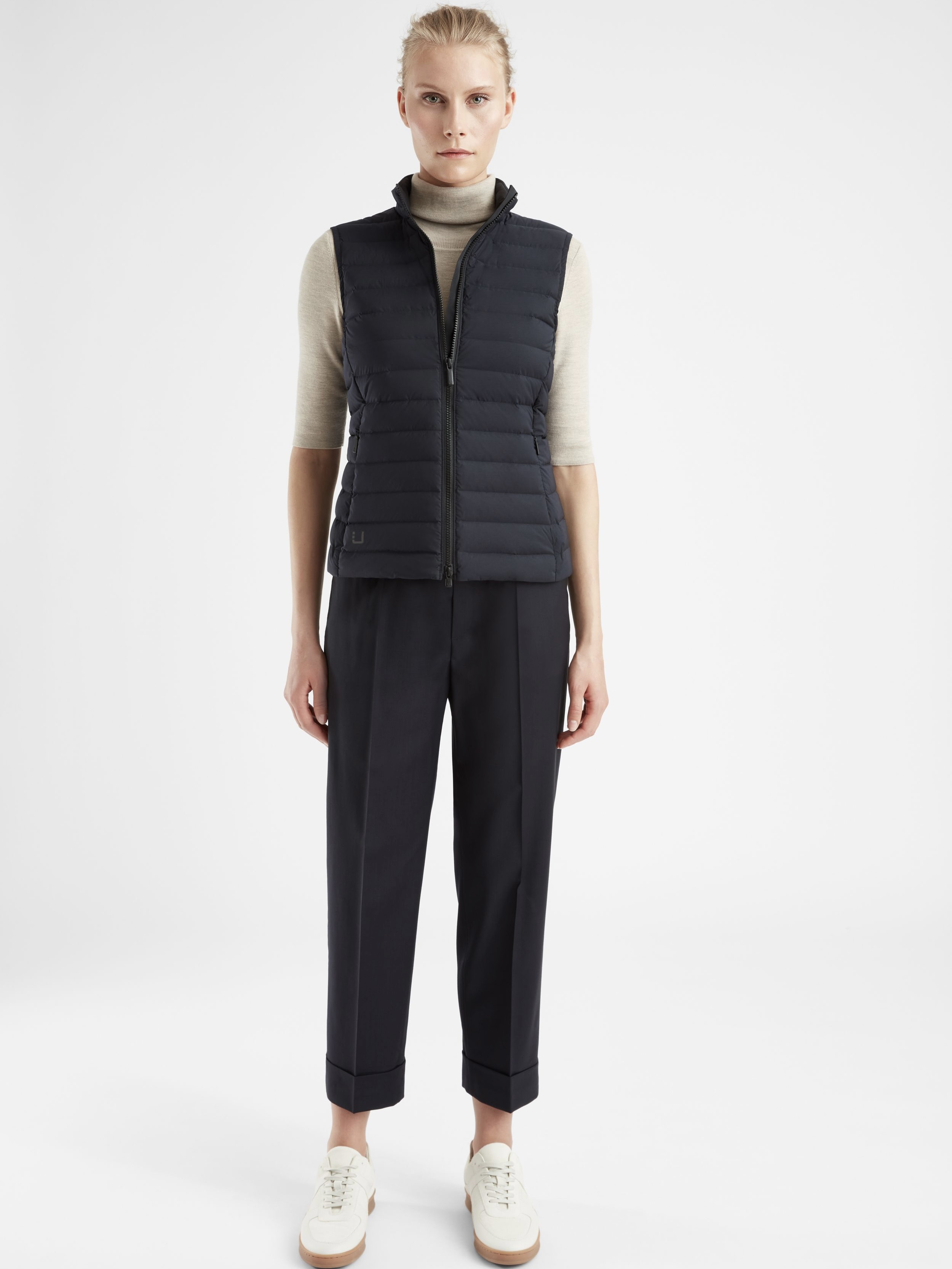 Feminin dunvest med et utsøkt snitt. Bemerkelsesverdig forhold mellom vekt og varme.