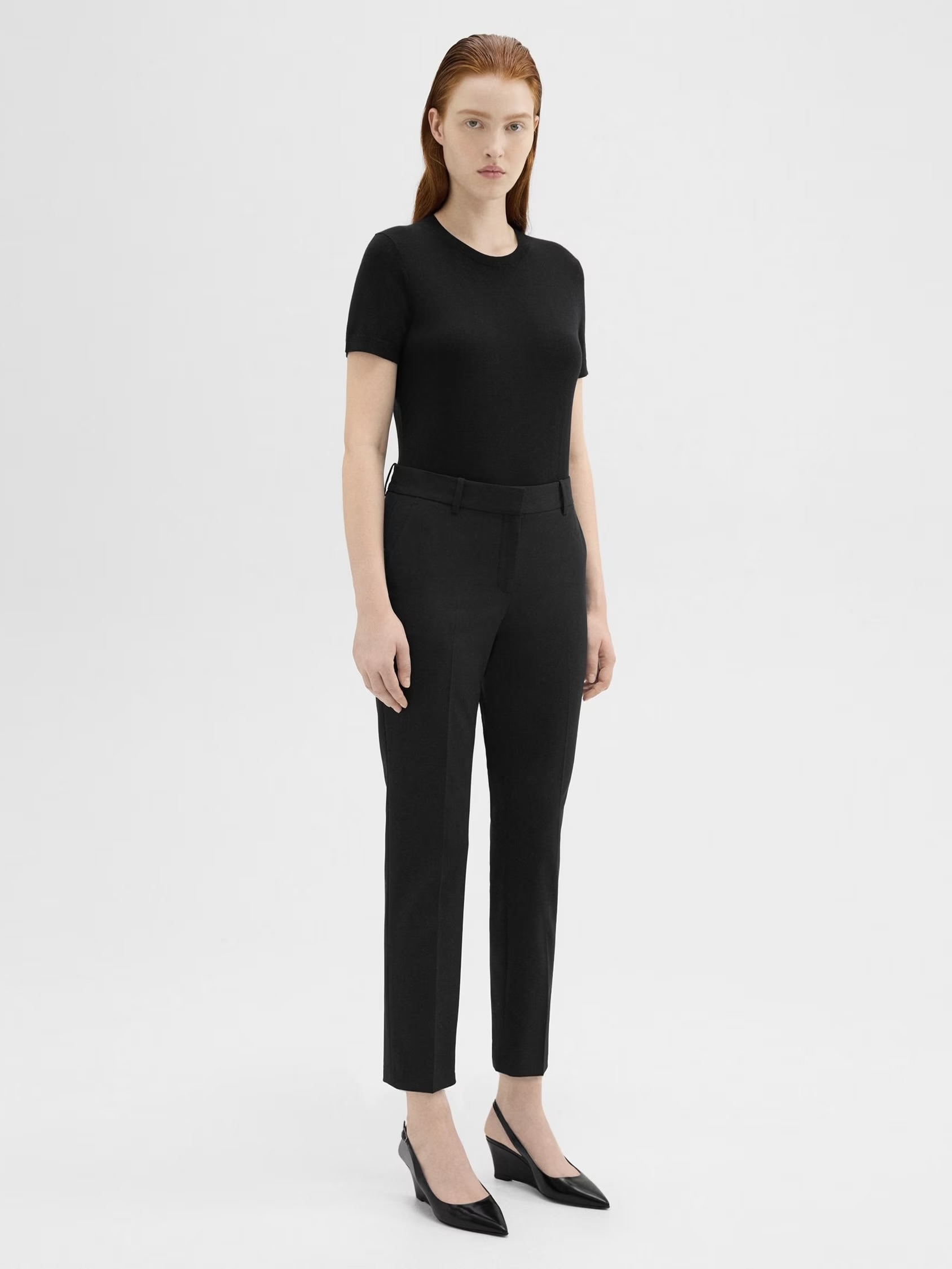 Denne avkortede buksen er en utpreget Theory favoritt, og er skreddersydd i deres bestselgende Treeca-passform, som flater benet med en slank profil. Den er detaljert med hekte-og-glidelåslukking, sidelommer og passpolerte lommer bak.