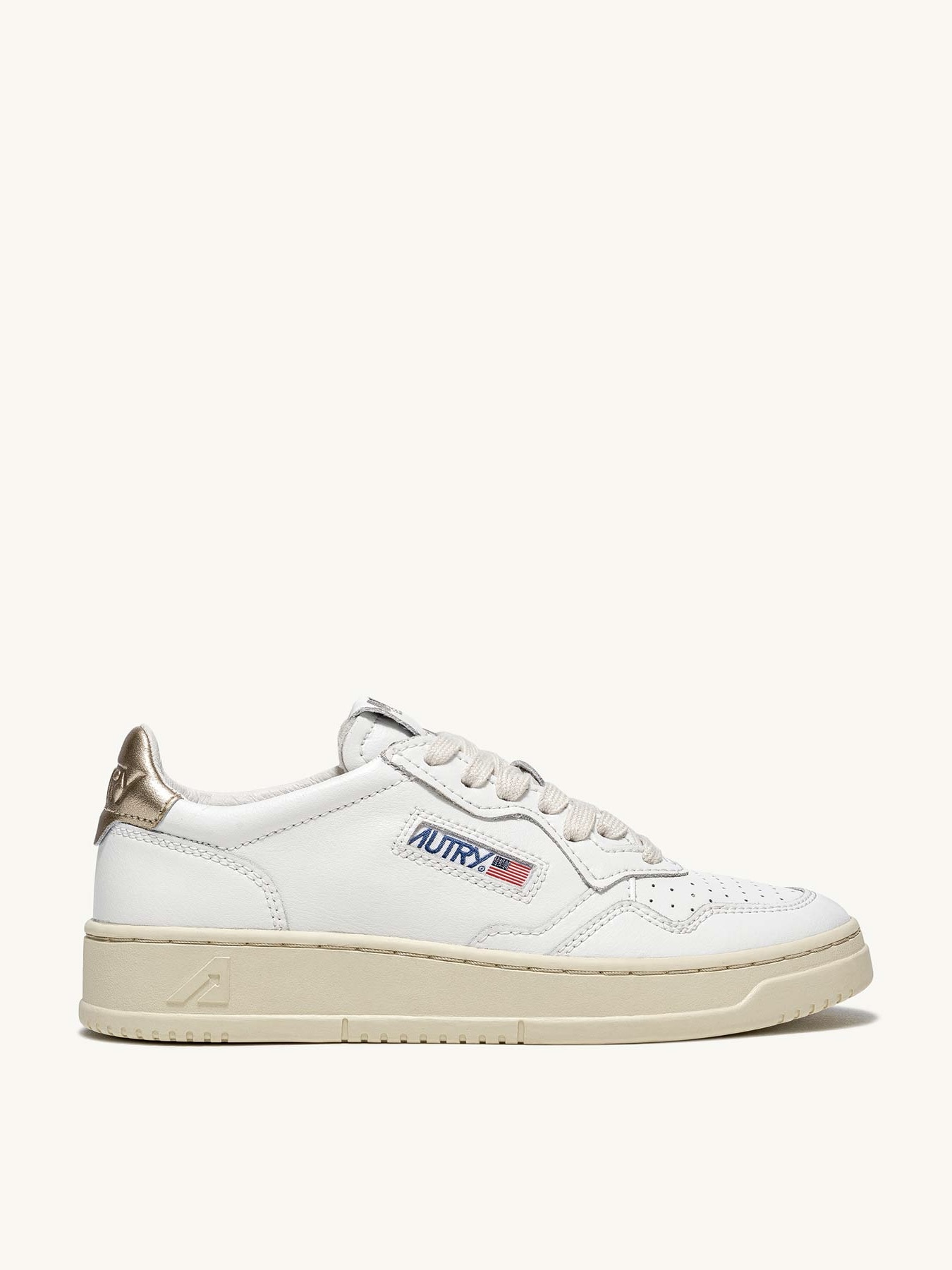 En tidløs stil: Autry Medalist er skoen inspirert av vintagemodellene fra åttitallet, omtolket i en moderne nøkkel. Et umiskjennelig design gjort unikt av den hvite læroverdelen og den ikoniske logoen preget på den gullfargede bakhælen.