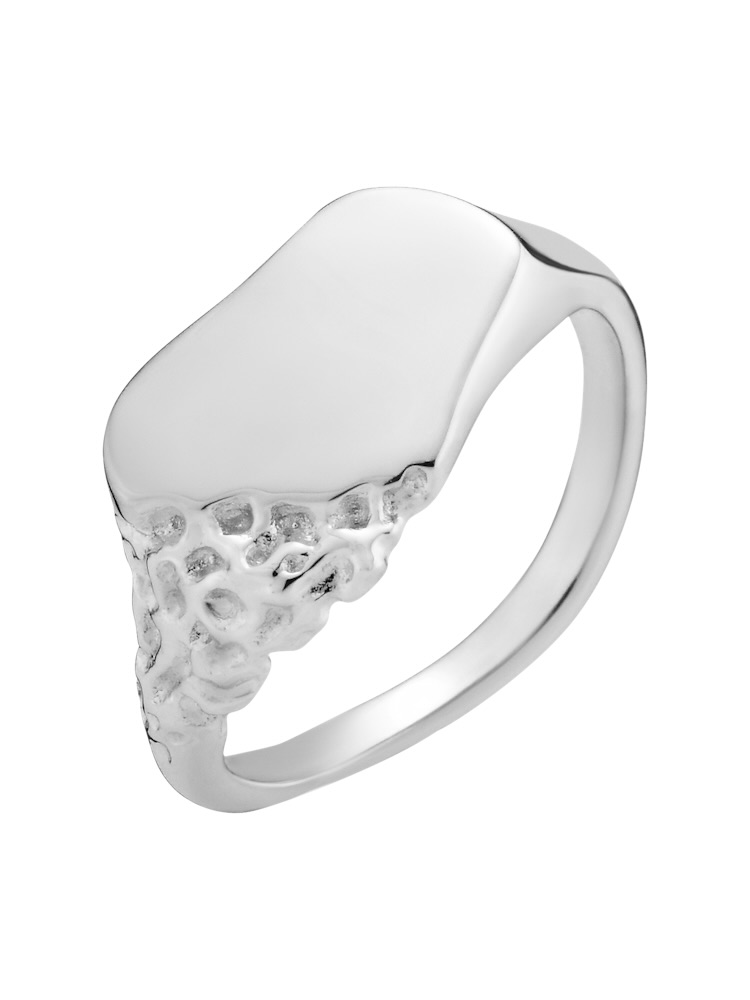 Sawyer er en klassisk, allsidig signetring med en liten vri. Formen på toppen av denne ringen refererer til formen til en dratapp, i kombinasjon med et motiv som ligner erosjonsprosessen. Denne ringen vil bare se bedre ut desto mer man bruker den.