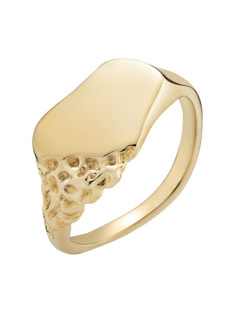 Sawyer er en klassisk, allsidig signetring med en liten vri. Formen på toppen av denne ringen refererer til formen til en dratapp, i kombinasjon med et motiv som ligner erosjonsprosessen. Denne ringen vil bare se bedre ut desto mer man bruker den.