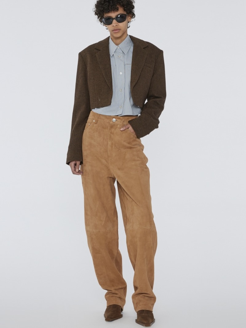 The Suede Straight Pants Camel er et par cocoon fit bukser i 100% geiteskinn. De har en knapp og glidelås, side- og baklommer og sømdetaljer. Kombiner den med den matchende suede oversize blazeren for full look.