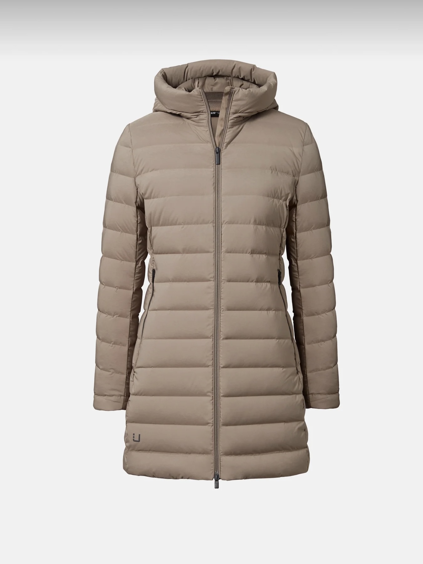 Ultralett dunfrakk, full stretch med vår svært tekniske slanke, vevde dunkanal. Din ideelle følgesvenn når du leter etter noe lett, varmt og enkelt å ta med. Komfortabel lengde på midten av låret.