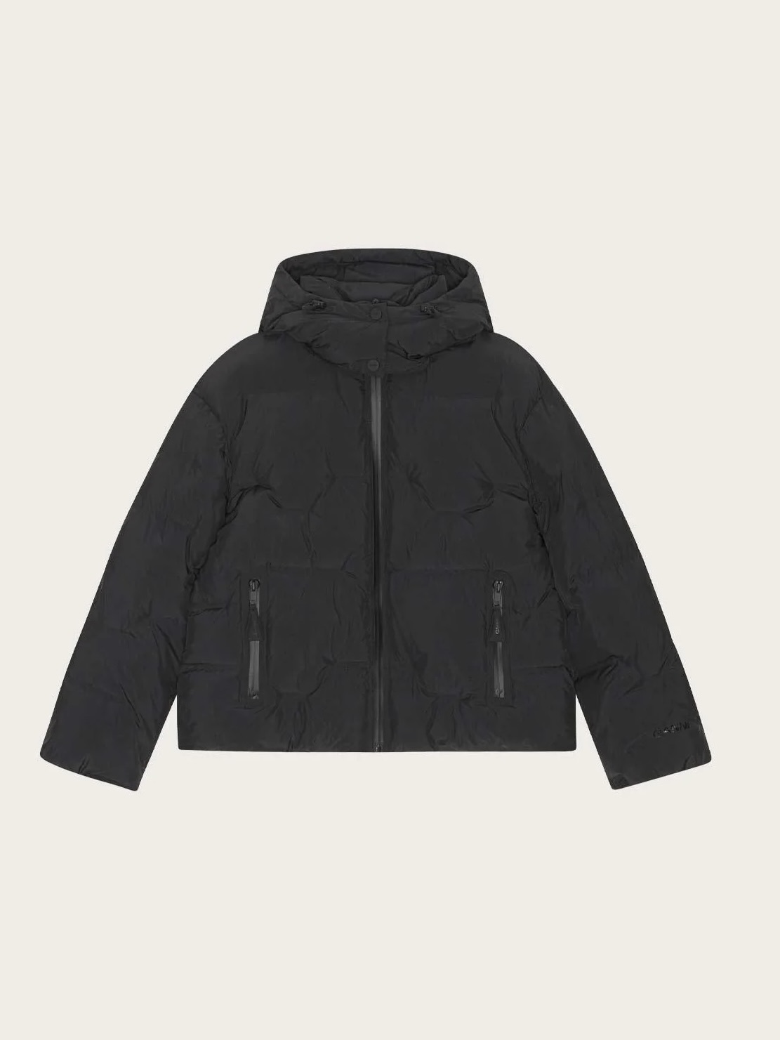 En cropped og kul boblejakke med avtagbar hette, lommer i sidene og lange ermer.