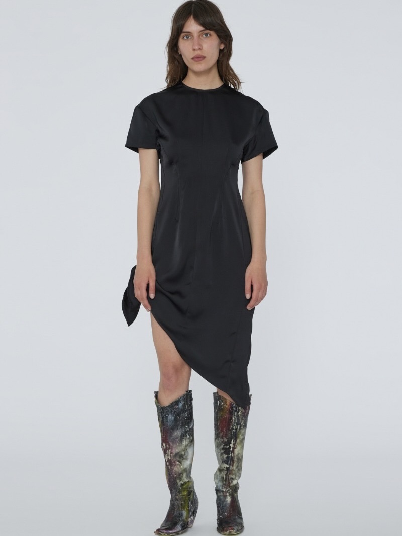 En tidløs klassiker laget med presisjon. Laget av 100 % resirkulert polyester, viser denne kjolen upåklagelig skreddersøm og en signaturknutedetalj. Bruk den nå, og la den forbli en stift i garderoben din i mange år framover.