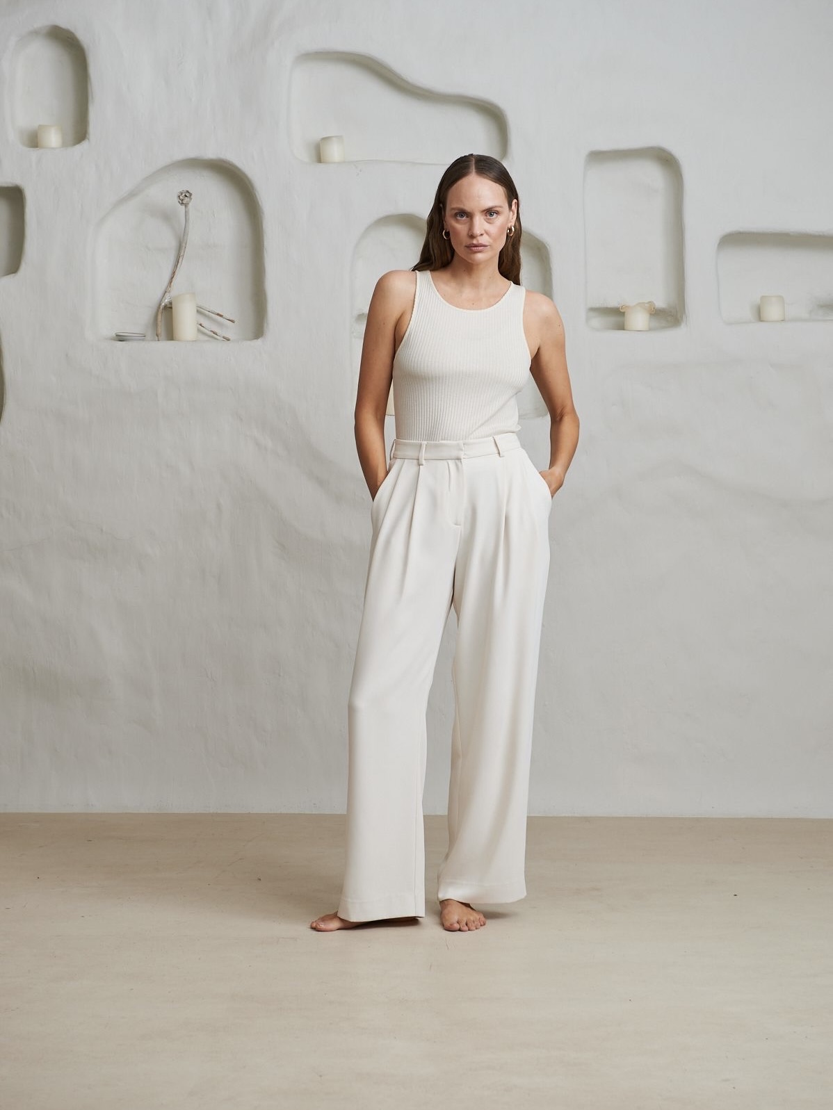 Ribbestrikket singlet laget i myk og behagelig bomullsblanding. Modellen er figursydd og har en tettsittende passform.