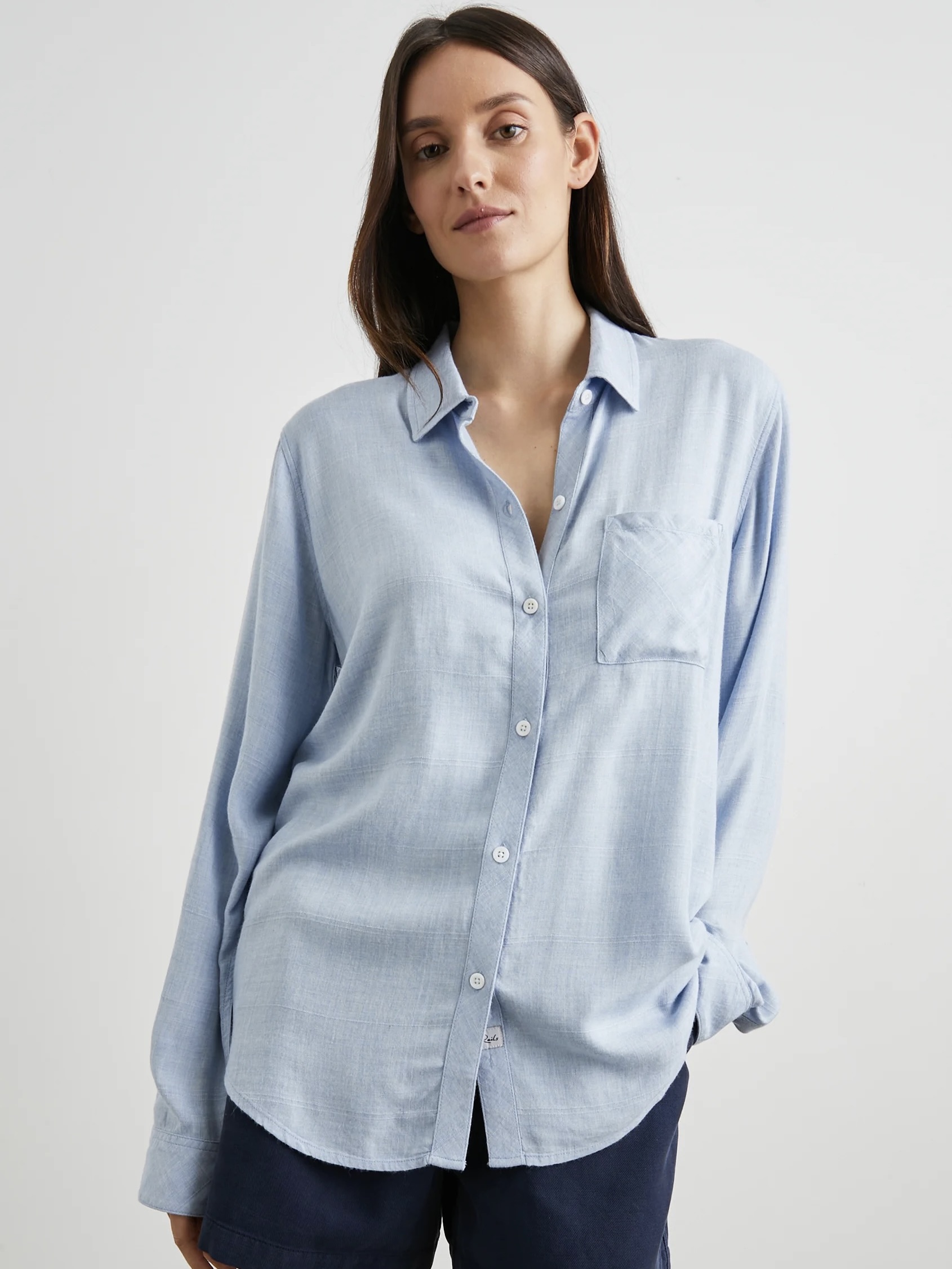 The Hunter Shirt er Rails sin signaturknapp-down-skjorte som fungerer for dag, natt, og enda bedre, helgen. Det unike stoffet er spunnet av en utrolig myk rayon som henger vakkert uten anstrengelse. Denne spesielle stilen har en dempet rosa tone. Perfekt avslappet med en klassisk passform, den kan gjemmes, knytes eller stå åpen.