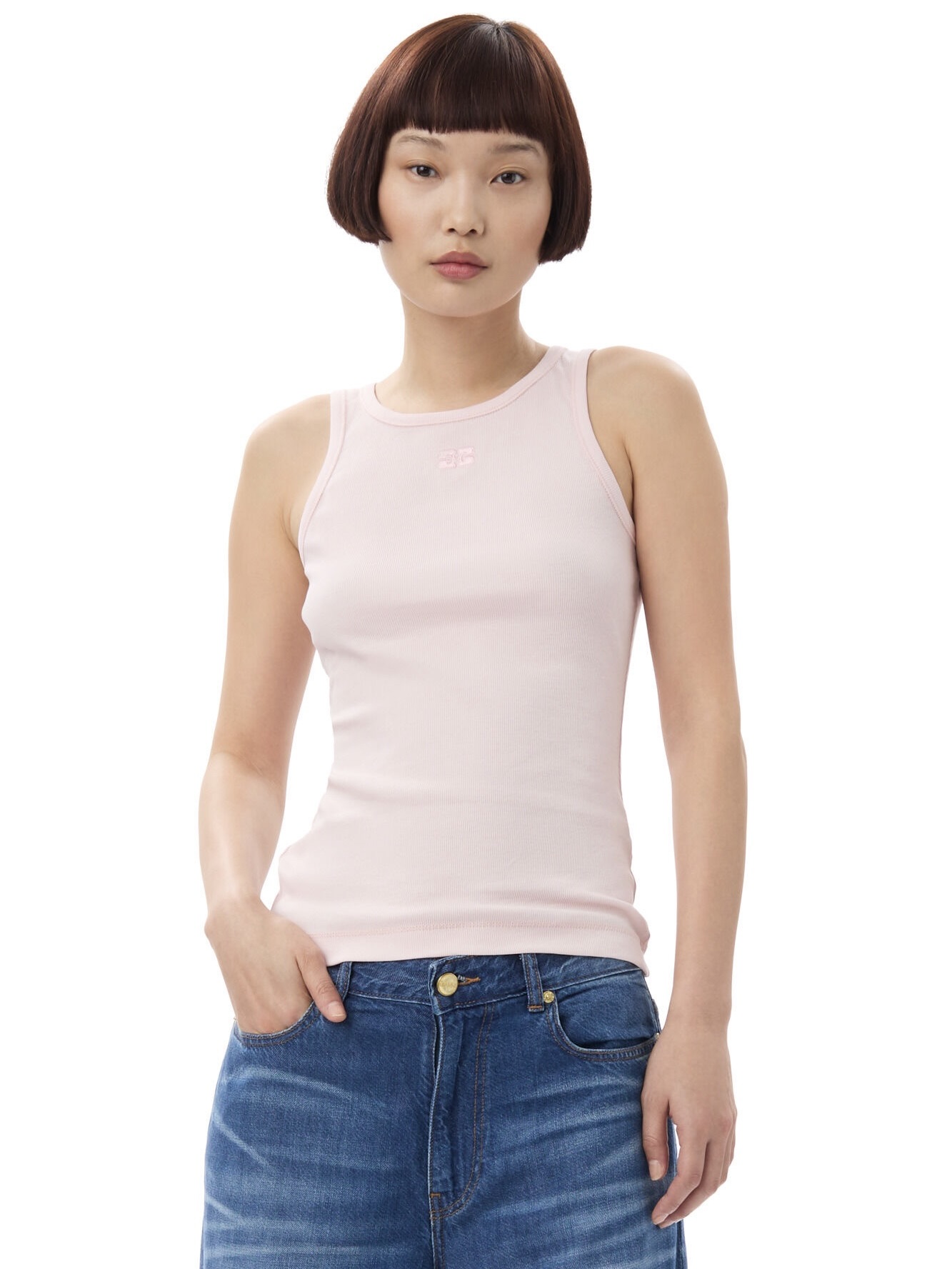 Denne lyserosa, myke bomullsstrikken har en rund hals og en GANNI Butterfly-logo foran.